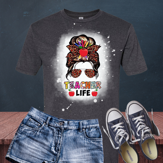Messy Bun Teacher Life Bleached T-Shirt