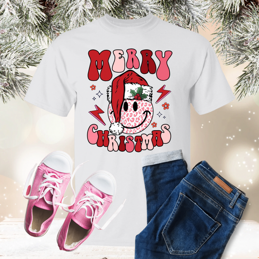 Merry Christmas Pink Leopard Crew Neck Sweatshirt