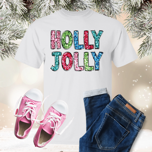 Faux Glitter Holly Jolly Toddler and Youth TShirt