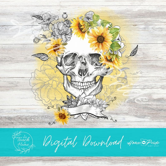 Watercolor Sunflower Skull Complete Sublimation Image Bundle