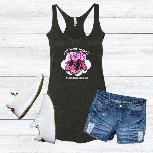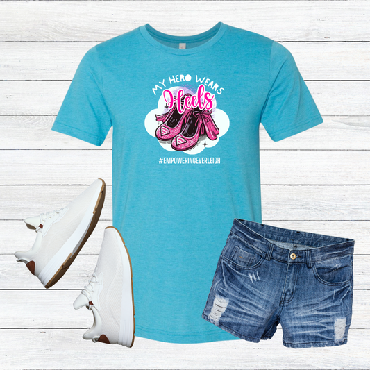 Empowering Everleigh "My Hero Wears Heels" Heather T-Shirt