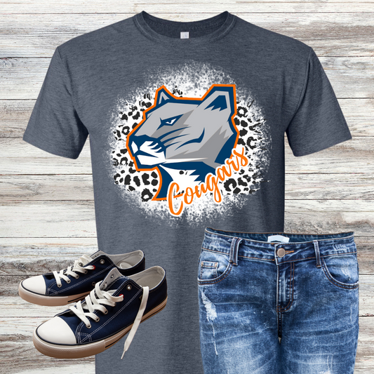 Gross Catholic Cougars Leopard Print Script Logo Bleached Shirt