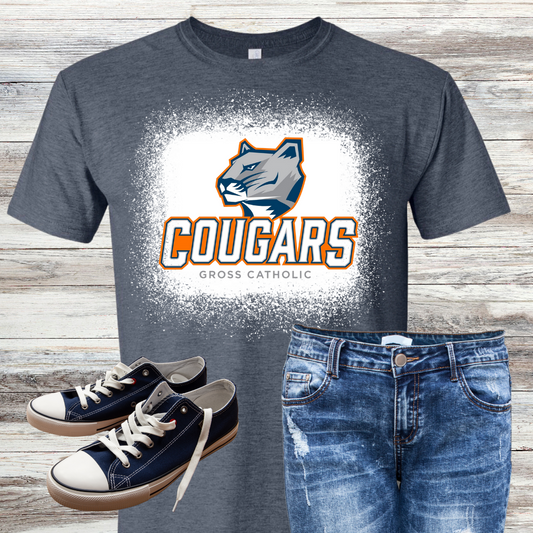 Gross Catholic Cougars Block Logo Bleached Shirt