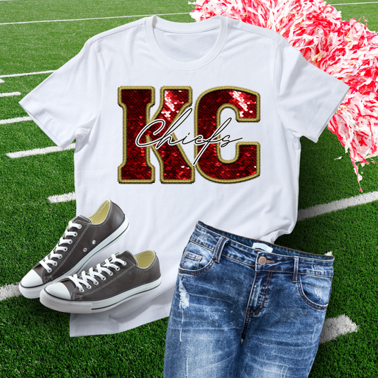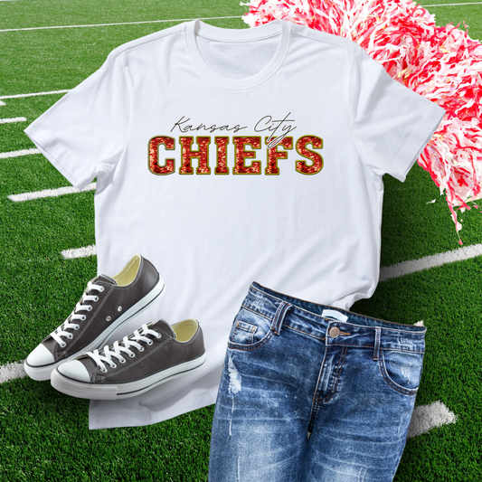 In My Chiefs Era Faux Glitter Embroidery Bleached TShirt
