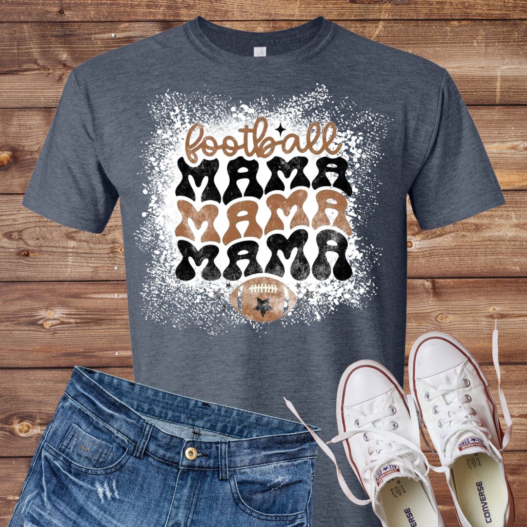 Football Mama Groovy Bleached T-Shirt