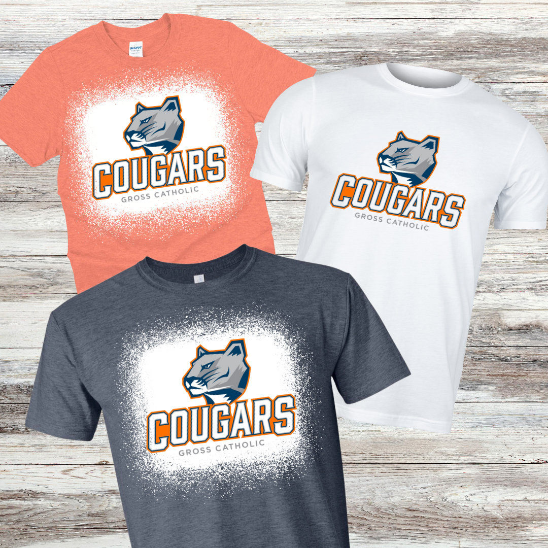 Gross Catholic Cougars Block Logo Bleached Shirt