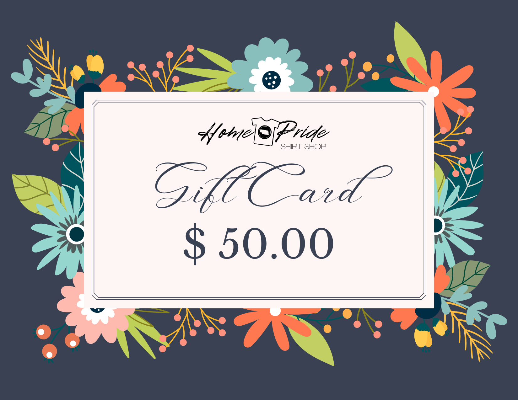 Our online store gift cards are here to save the day. Let your loved ones explore a world of possibilities as they choose from our wide range of products. From trendy fashion to must-have accessories, they'll find exactly what they love. Easy to send and even easier to redeem – make gifting a breeze with Home Pride Shirt Shop Gift Cards!