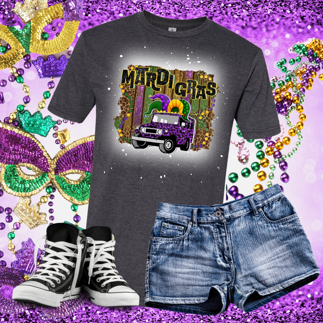 Mardis Gras Purple Leopard Truck Bleached T-Shirt