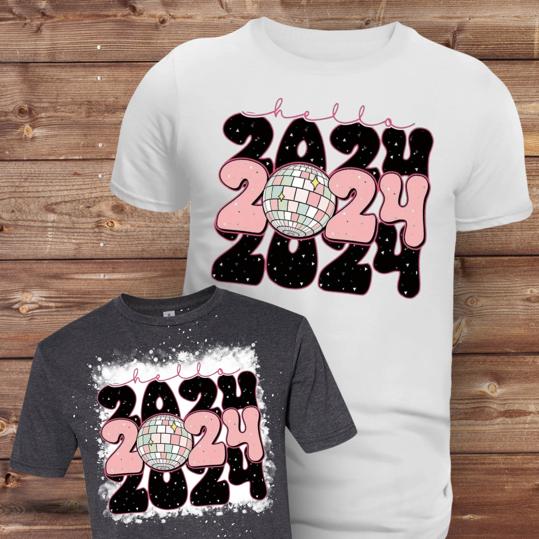 New Years Hello 2024 Bleached T-Shirt