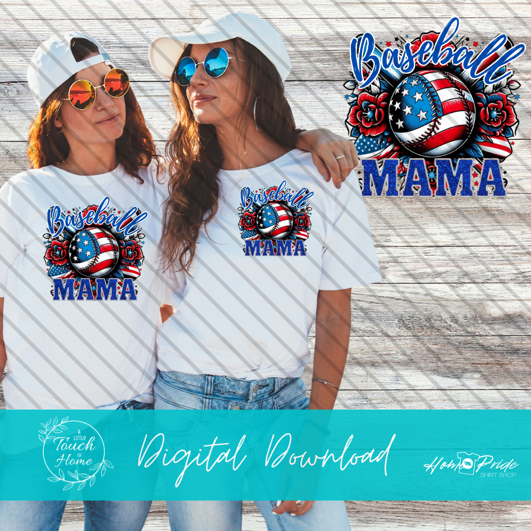 Red, White, & Blue "Baseball Mama" Digital Download PNG.