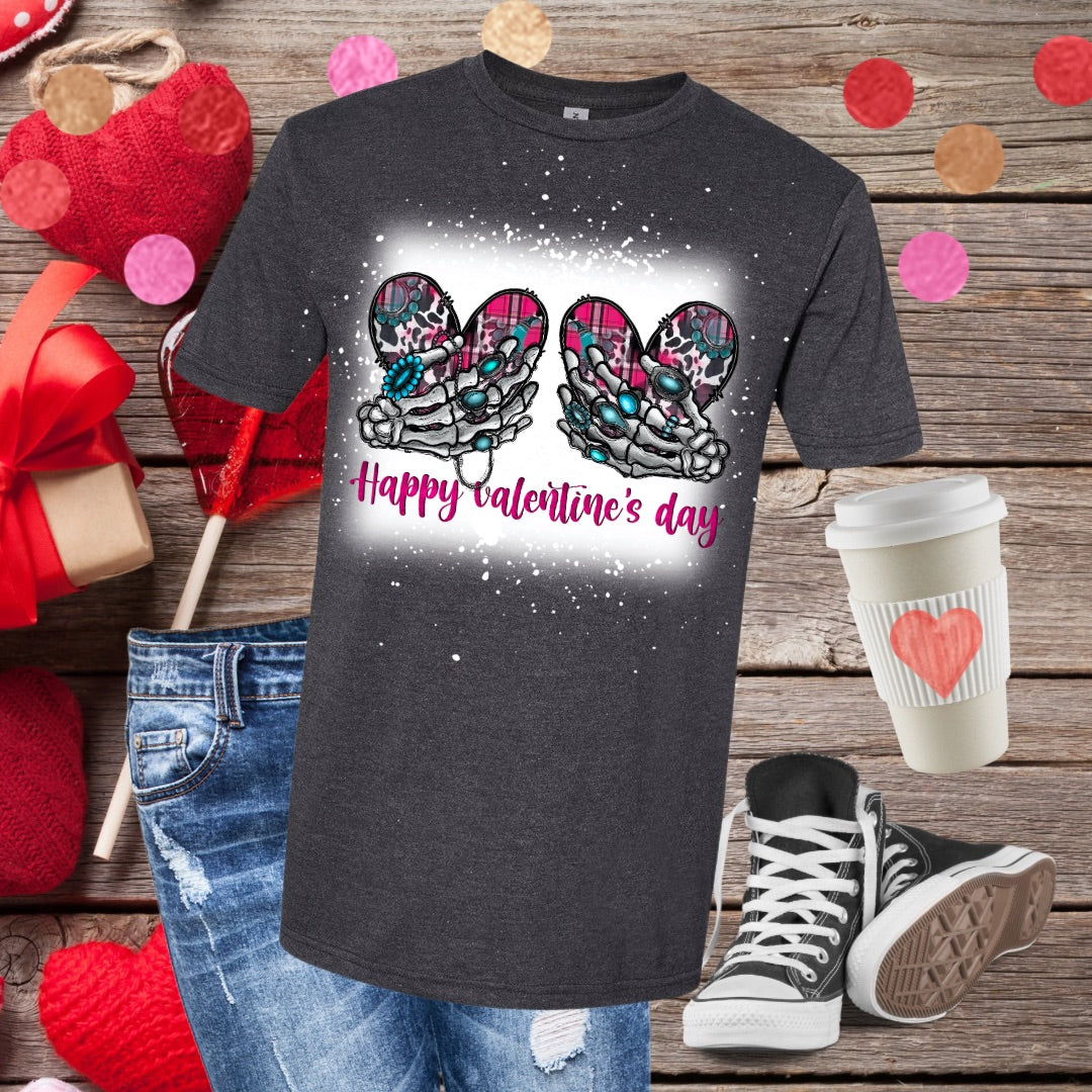 Skeleton Hands Grabbing Heart Boobs Bleached T-Shirt
