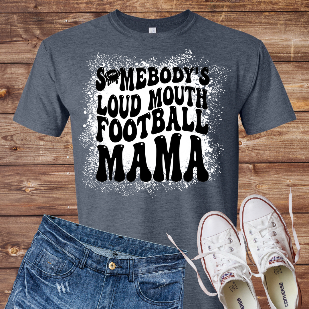 Somebodys Loud Mouth Football Mama Bleached T-Shirt