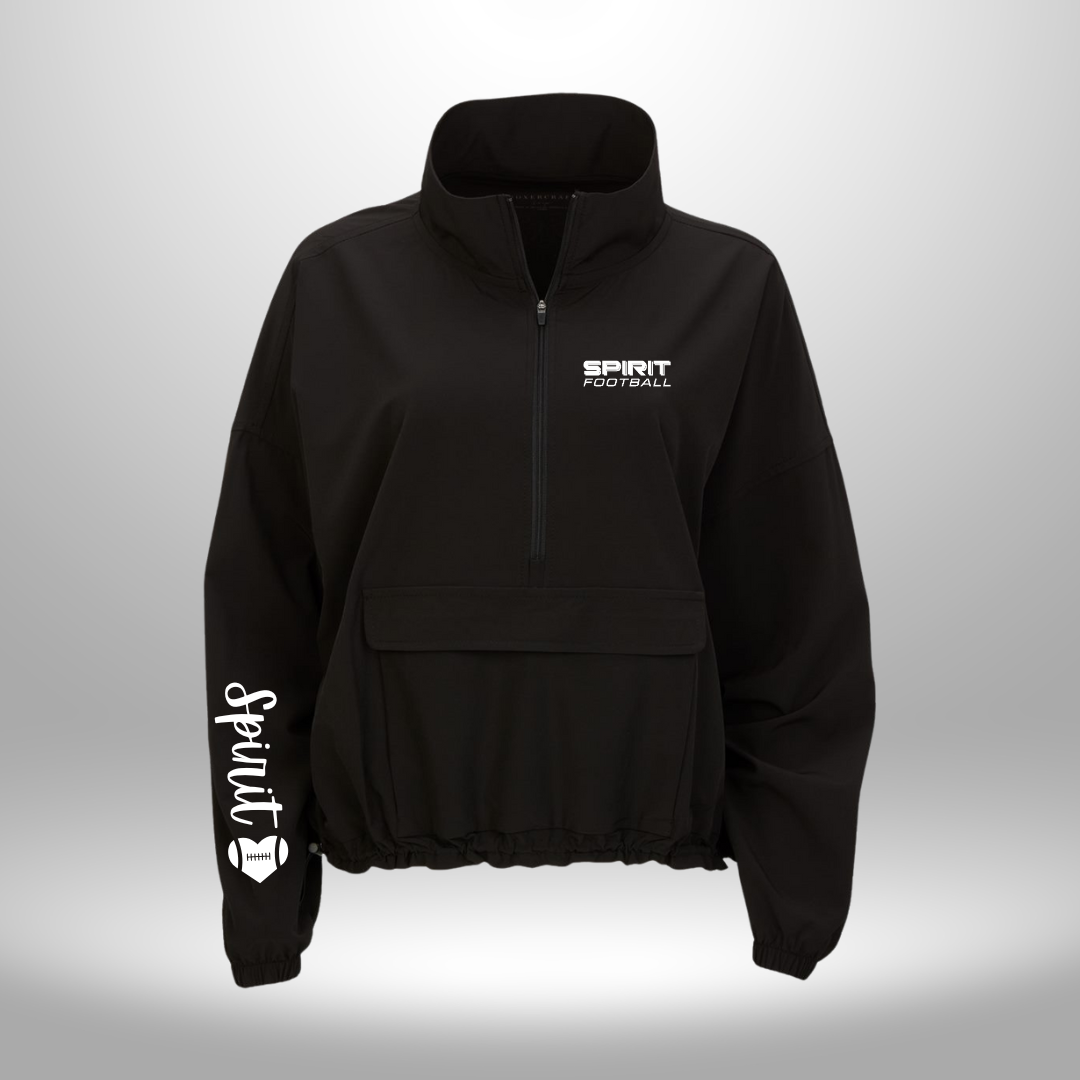 - Drawcord waistband with bungee pull stop at right and left side seams